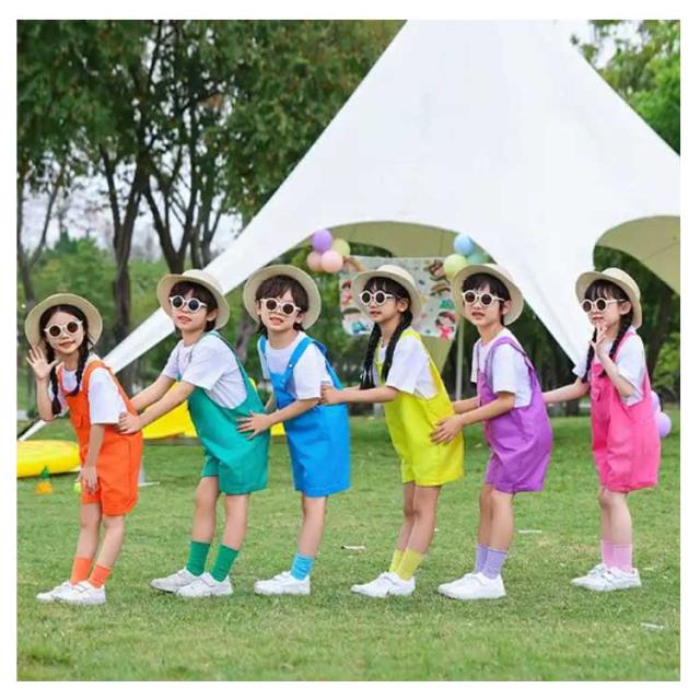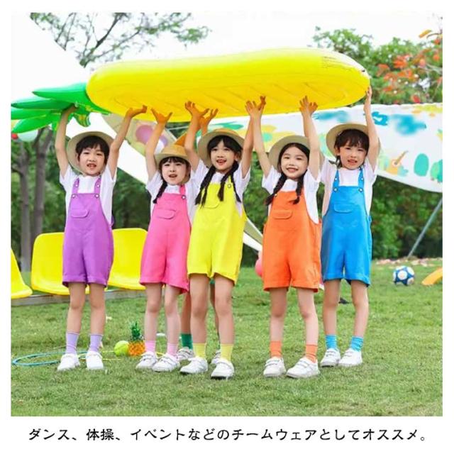 | 発表会や記念写真撮影にピッタリのカラーサロペットパンツ。 明るい色合い、こどもをより可愛く映えます。 ダンス、体操、イベントなどのチームウェアとしてオススメ。 シンプルでおしゃれなデザイン、シンプルなtシャツと合わせるだけで、デイリーも大活躍できます。 | |
