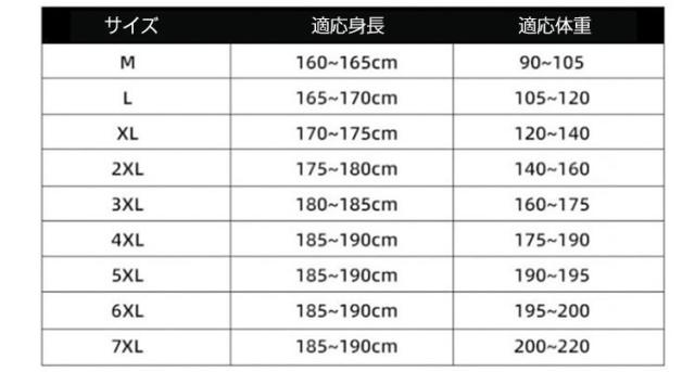 | サイズ | M L XL 2XL 3XL 4XL 5XL 6XL 7XL |