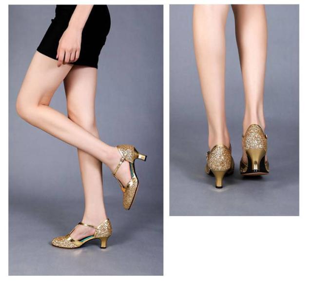 社交ダンスシューズ ベージュサテン レディース 社交ダンス 社交ダンスシューズ ヒール高3cm/5cm ダンスシューズ シューズ ダンス用品 女性ラテンシューズ ゴールド