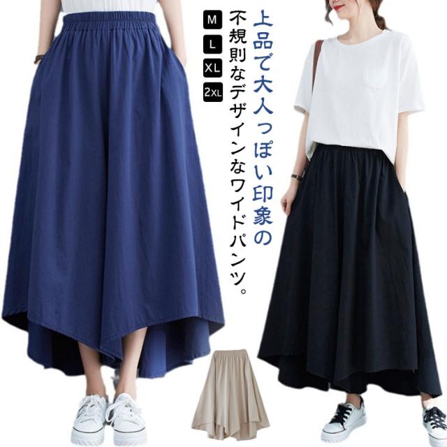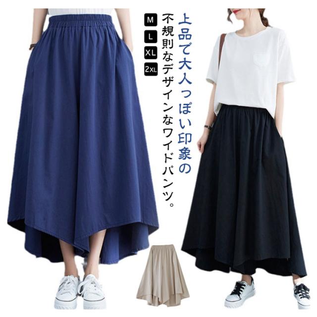 | M-2XL!上品で大人っぽい印象の不規則なデザインなワイドパンツ。 軽やかな素材を作用し、歩くたびに動きのある表情を演出します♪ カジュアルにはもちろんきれいめにも、様々なシーンにお使いいただけます。 | |