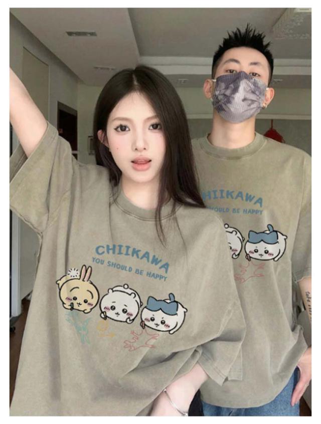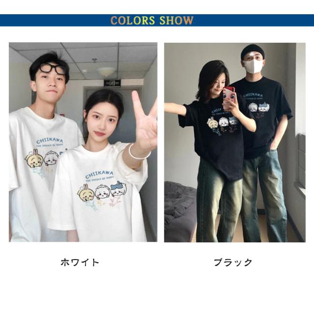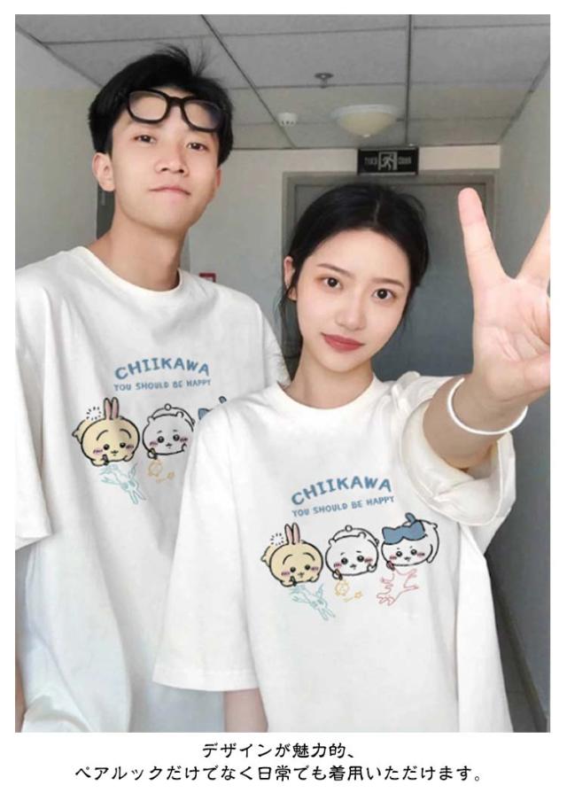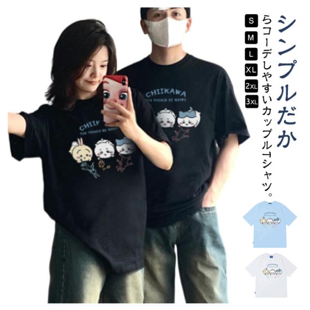 おしゃれ 可愛い Tシャツ メンズ 半袖 レディース トップス お揃い カットソー カップル カップル キャラクター tシャツ 綿 コットン ペアルック 服 カップル ペア プレゼント 夫婦 tシャツ カジュアル シンプル 春夏 服 ホワイト ブラック ライトブルー