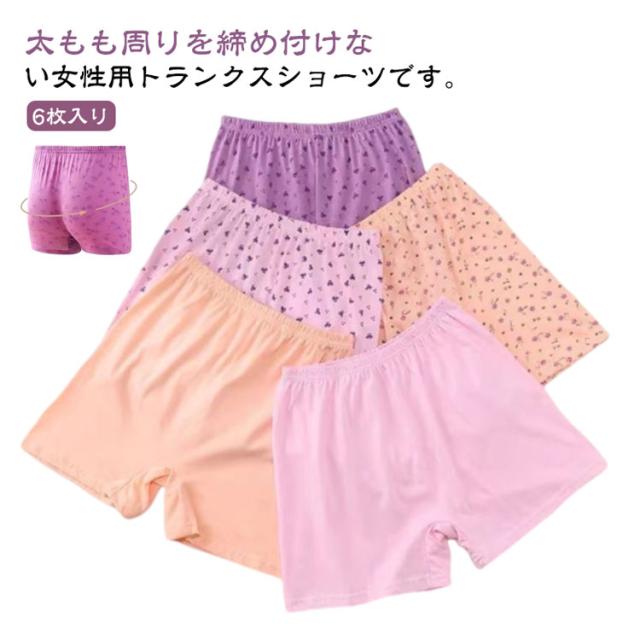 | 太もも周りを締め付けない女性用トランクスショーツです。6枚入り 可愛くはけるトランクスタイプのショーツ。 お腹まですっぽりの深ばき丈。 優しい肌触りの綿生地で吸汗性、通気性があります。 ウエストはゴムでお腹を締めつけにくく、裾広がりで履きやすく、脱ぎやすいです。 | |