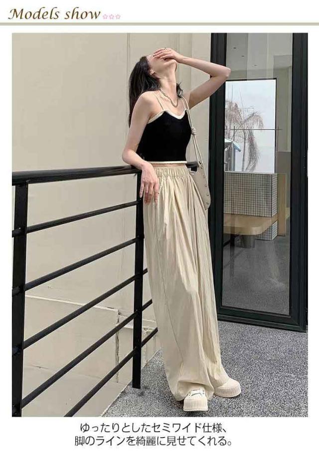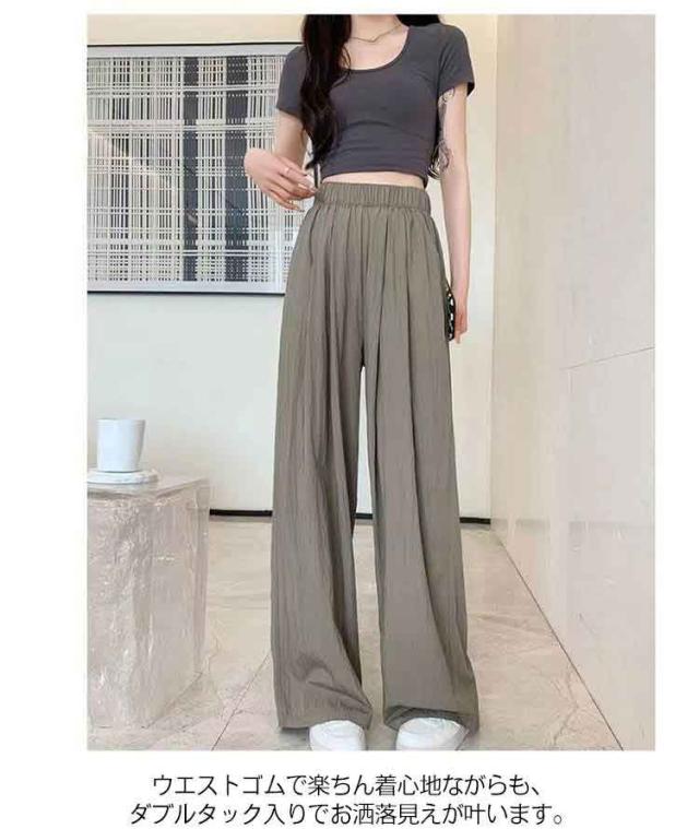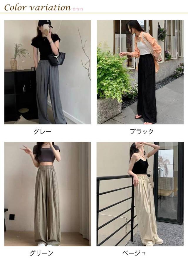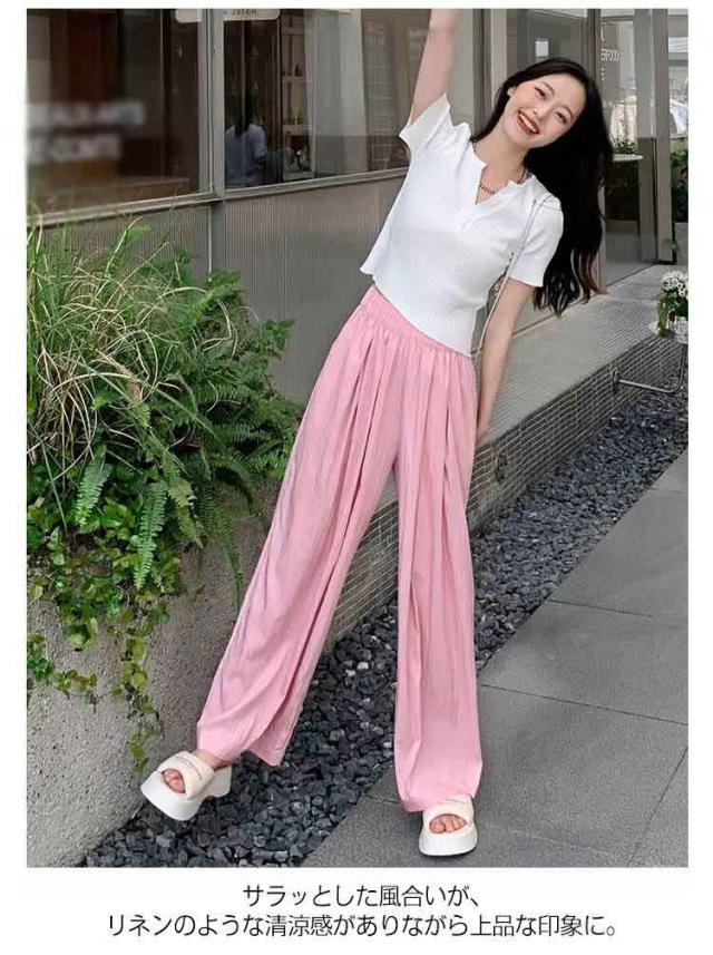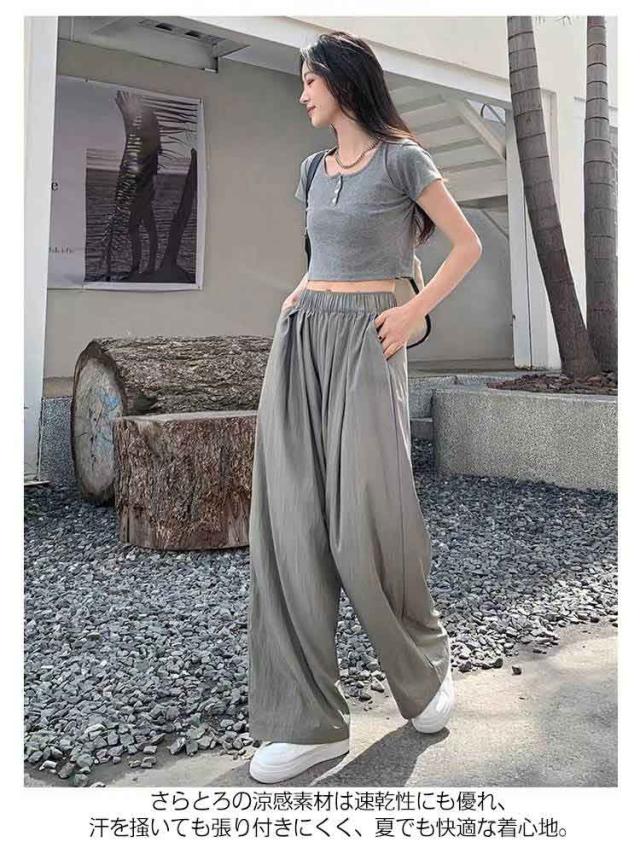 イージーパンツ ワイドパンツ レディース 冷感 涼しい タック入り 速乾 タック入り 夏 パンツ ボトムス ゆったり ガウチョパンツ 冷感パンツ ワイド カジュアルパンツ 接触冷感 ハイウエスト タック ウエストゴム オフィス 大きいサイズ