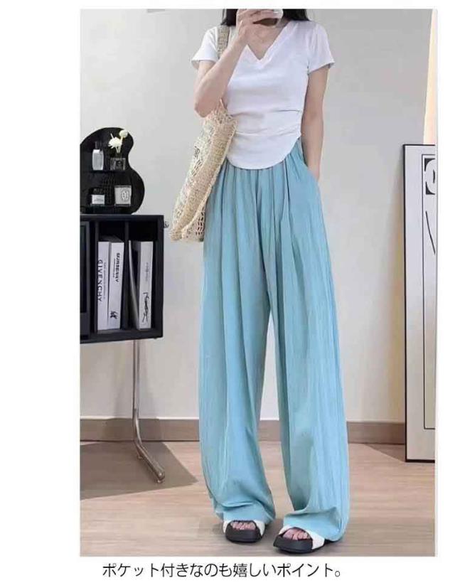 | 人気の冷感素材ワイドパンツが登場。しっかり太めのシルエットがこなれ見えするパンツ。 ゆったりとしたセミワイド仕様、脚のラインを綺麗に見せてくれる。 ウエストゴムで楽ちん着心地ながらも、ダブルタック入りでお洒落見えが叶います。 サラッとした風合いが、リネンのような清涼感がありながら上品な印象に。 さらとろの涼感素材は速乾性にも優れ、汗を掻いても張り付きにくく、夏でも快適な着心地。 ポケット付きなのも嬉しいポイント。 | |