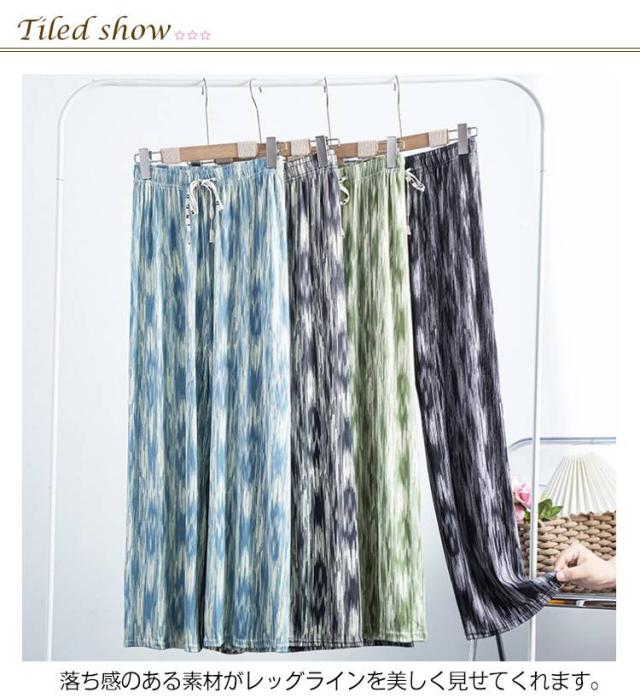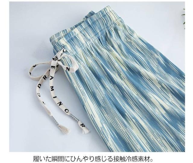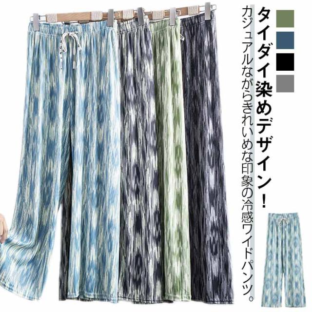 体型カバー 冷感 パンツ 柄パンツ 涼しい ワイドパンツ イージーパンツ タイダイ染め 接触冷感 涼感 レディース 速乾 カジュアルパンツ 柄 夏 夏物 薄手 ロングパンツ おしゃれ 着痩せ タイダイ染め サマーパンツ ウエストゴム