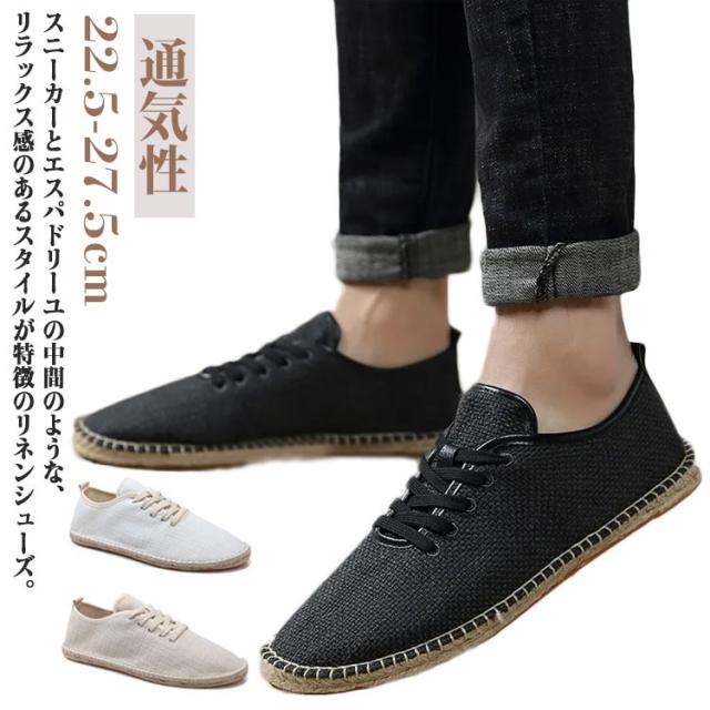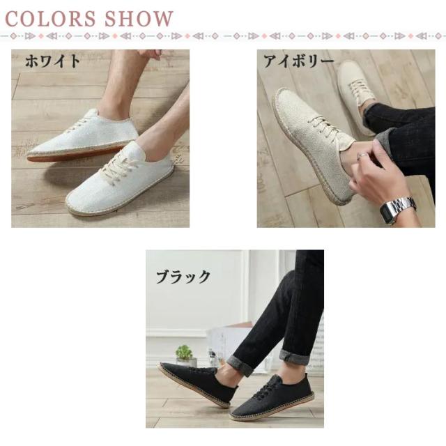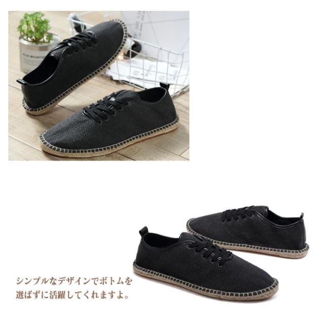 ジュート巻き 大きいサイズ メンズ 歩きやすい レースアップ リネン エスパドリーユ エスパドリーユ 麻 スニーカー 通気性 リネンシューズ シンプル カジュアルシューズ 疲れない 軽量 無地 仕事 通勤 通学 スリッポン カジュアル 春 夏 メンズシューズ 黒 白