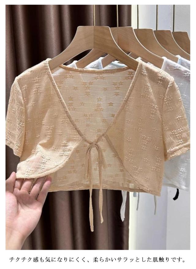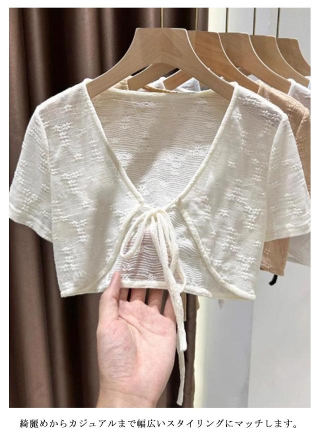 カーディガン ボレロ レース 夏用 レディース リボン レースカーディガン 半袖 羽織り かわいい レース ショート丈 透け感 シアー トップス レースボレロ サマーカーディガン UVカット 冷房対策 春夏 きれいめ お呼ばれ 結婚式 薄手 披露宴 おしゃれ