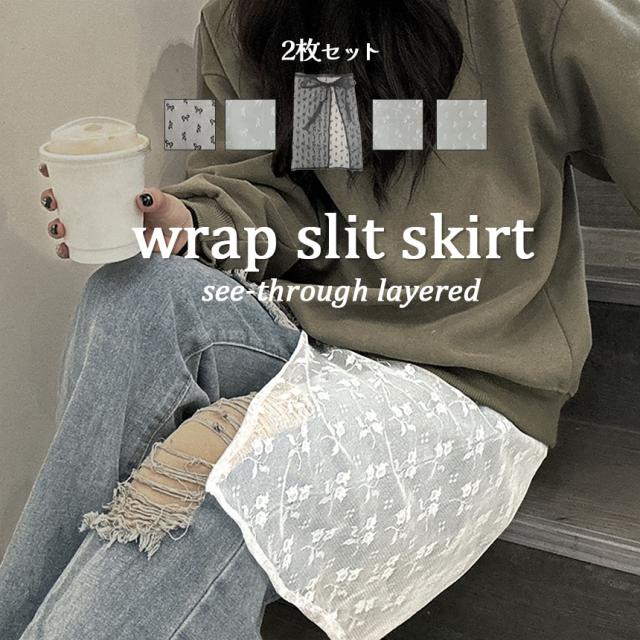 ラップスカート 2枚セット レイヤードラップスカート SNS話題スカート 巻きスカート トレンドアイテム 韓国風 グランジスタイル バレエコア y2k シアー レース 付け裾 レディース シースルー 巻き レイヤード 重ね着 刺繍 シアーレース 刺繍レイヤードラップスカート チュール