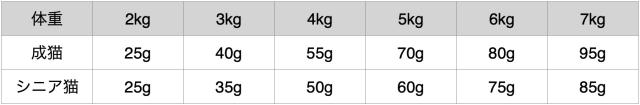 ・表を目安に体重や便の状態、毛ヅヤなどを見ながら適宜調節して下さい。