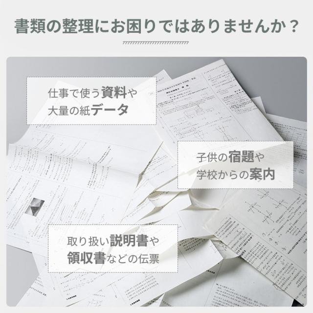 【書類整理に】仕事で使う資料や紙データ、電化製品の取り扱い説明書、領収書、子供の宿題、学校からの案内など、日々増えていく書類の整理にお困りの方におすすめの商品です。