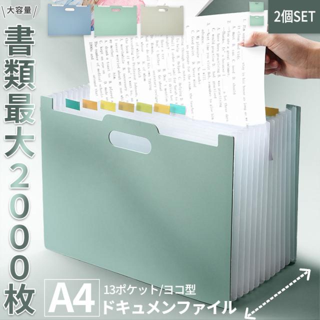 ドキュメントファイル ファイルボックス 2個セット 大容量 A4 ドキュメントボックス ドキュメントスタンド ケース ファイル 書類整理 伸縮 収納 ファイルケース ファイルスタンド 書類ケース 書類収納 保管ケース 書類 じゃばら アコーディオン 仕切り 13ポケット プリント 紙