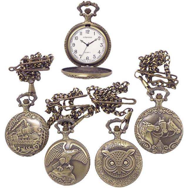 懐中時計 蓋付 ポケットウォッチ VR-PWLID-BZ チェ−ン フック 3針 時 分 秒 クォーツ ブロンズカラー 送料無料