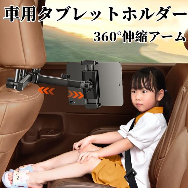 車用 タブレットホルダー 後部座席 伸縮アーム ヘッドレスト タブレットホルダー 滑り防止 ipad 車載ホルダー スタンド 車載用ヘッドレスト 360°回転可能 カー用品 iPad Pro/Air/Mini/Galaxy/Fire 4.7-12.9インチタブレットに対応