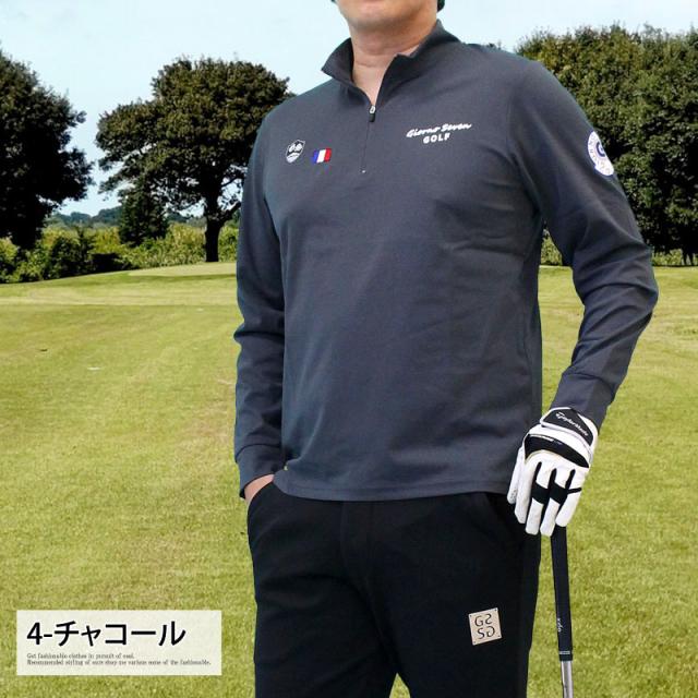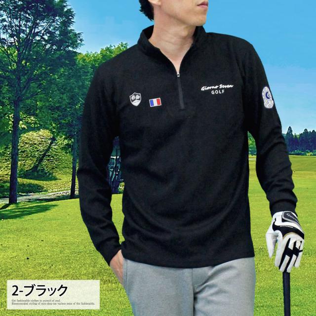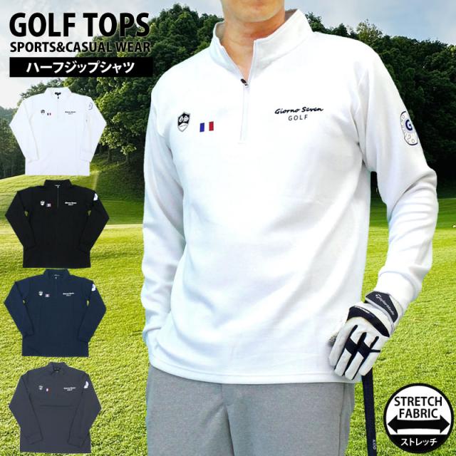 M~XXL 新作 ゴルフウェア メンズ ハーフジップ モックネックシャツ GIORNO SEVEN ジョルノセブン ハイネック トップス 長袖 ポロシャツ ロゴマークプリント ブランド 送料無料 おしゃれ 春夏 秋冬 ゆうパケ