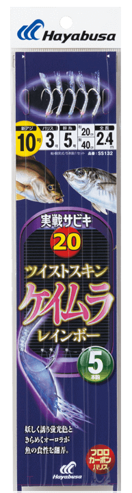 ハヤブサ 実戦サビキ20 ツイストスキンケイムラレインボー 5本鈎 12-4 (鈎12号 ハリス4号) SS132 / 仕掛け 釣具 メール便可