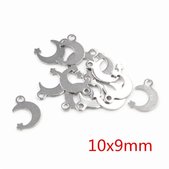 サージカルステンレス316L製の小さい三日月と星をモチーフにした丸穴の開いたチャームにできるDIY用のステンレス部品。
