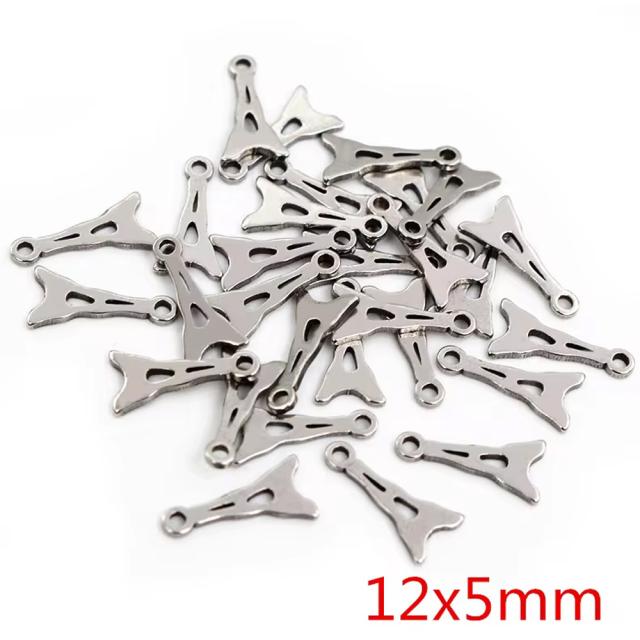 サージカルステンレス316L製のエッフェル塔や東京タワーをモチーフにした丸穴の開いたチャームにできるDIY用のステンレス部品。