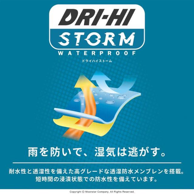 アッパーには高グレードの透湿防水メンブレン「ドライハイ ストーム」を搭載。