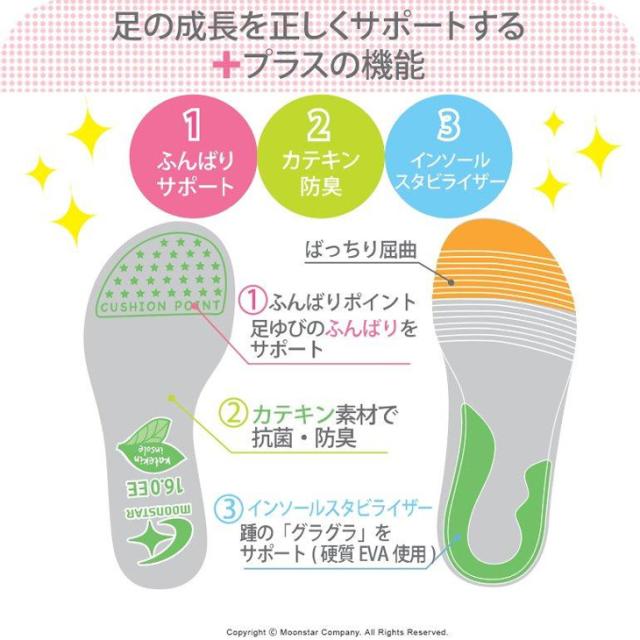 子どもの足の成長をサポートする「4つの機能(つま先ゆったり/機能性カップインソール/