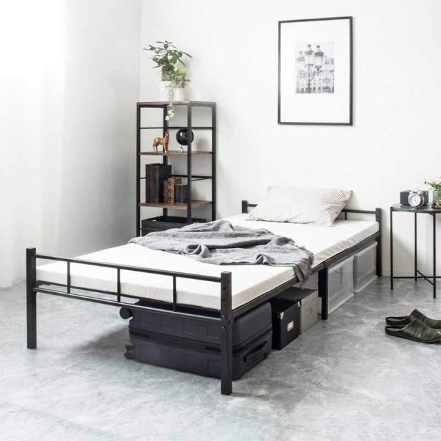 ベッド パイプベッド シングル シングルベッド アイアン 耐過重200キロ ブラック ホワイト 頑丈設計 ヘッドレスパイプベッド