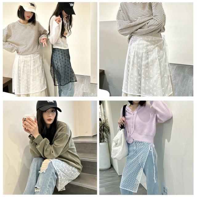 ラップスカート レイヤードラップスカート SNS話題スカート 巻きスカート トレンドアイテム 韓国風 グランジスタイル バレエコア y2k シアー レース 付け裾 レディース シースルー 巻き レイヤード 重ね着 刺繍 シアーレース 刺繍レイヤードラップスカート チュール