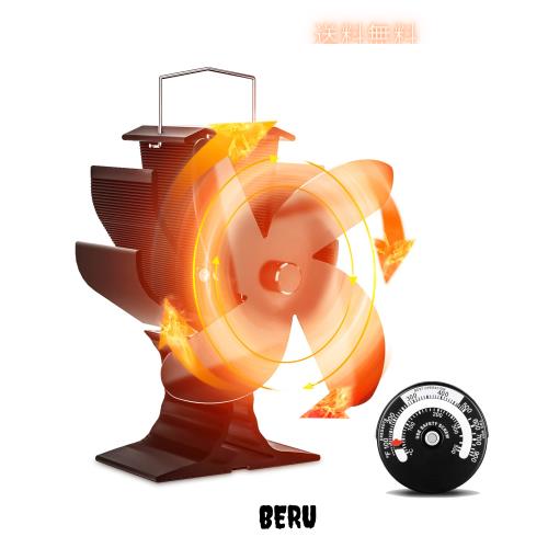 ◆商品名:Signstek ストーブファン 薪ストーブファン 石油ストーブファン エコストーブファン 小型 キャンプ用 温度計付き 扇風機 暖炉ファン 空気