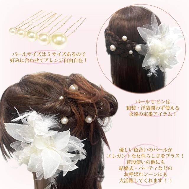 上品に艶めくパールUピンは差し込むだけでパッと華やかな雰囲気に仕上げてくれる優秀アイテム!