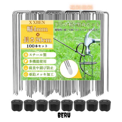 X XBEN 防草シート 固定ピン 黒丸付き 幅4mm 長さ20cm 100本セット 除草シート 押さえピン 雑草防止シート 園芸シート Uピン杭 人工芝 u
