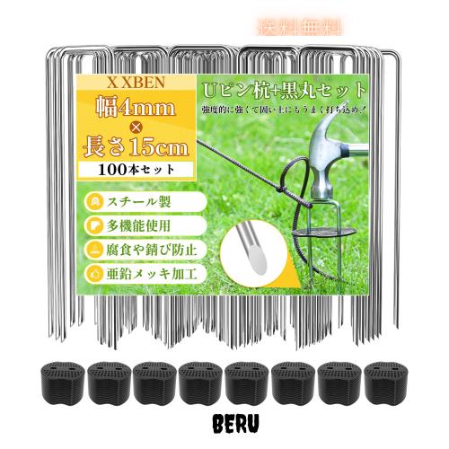 ◆商品名:X XBEN 防草シート 固定ピン 黒丸付き 幅4mm 長さ15cm 100本セット 除草シート 押さえピン 雑草防止シート 園芸シート Uピン杭 人工芝 u