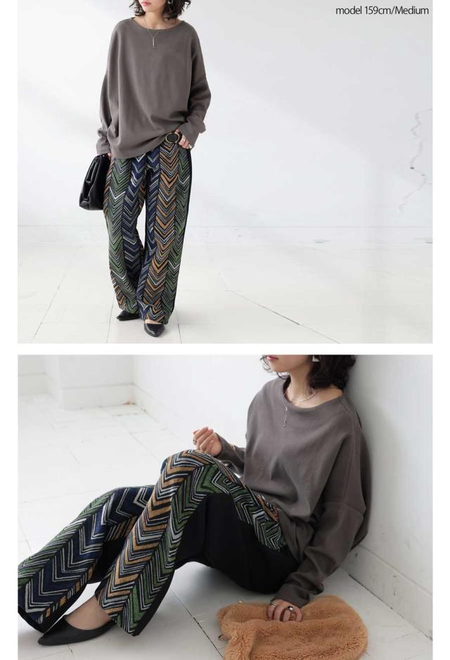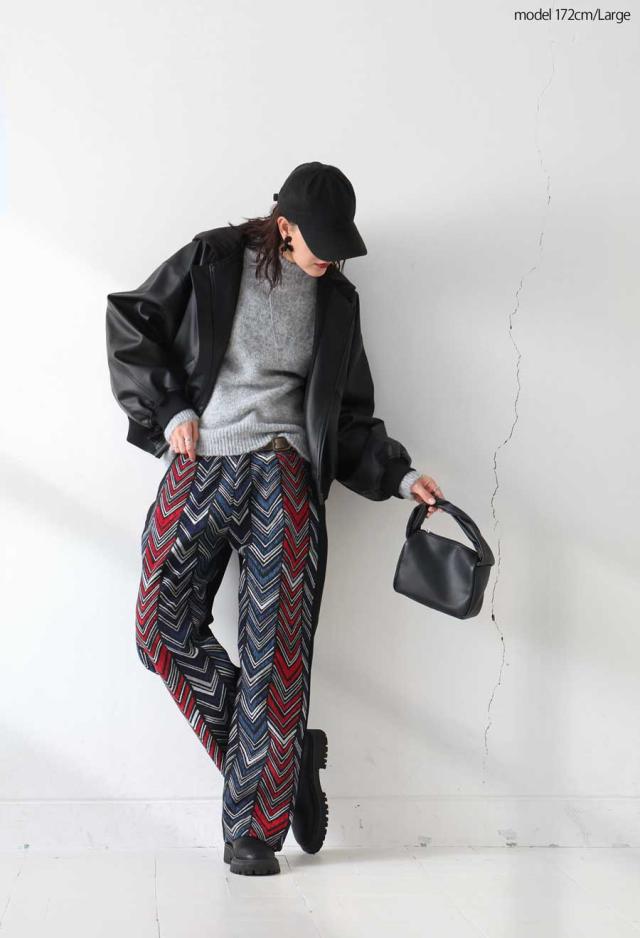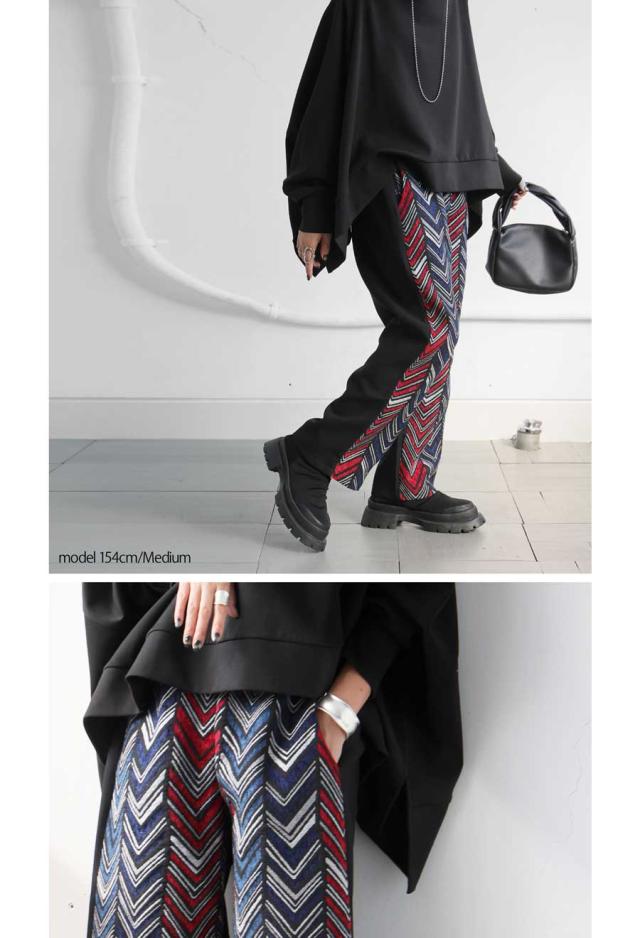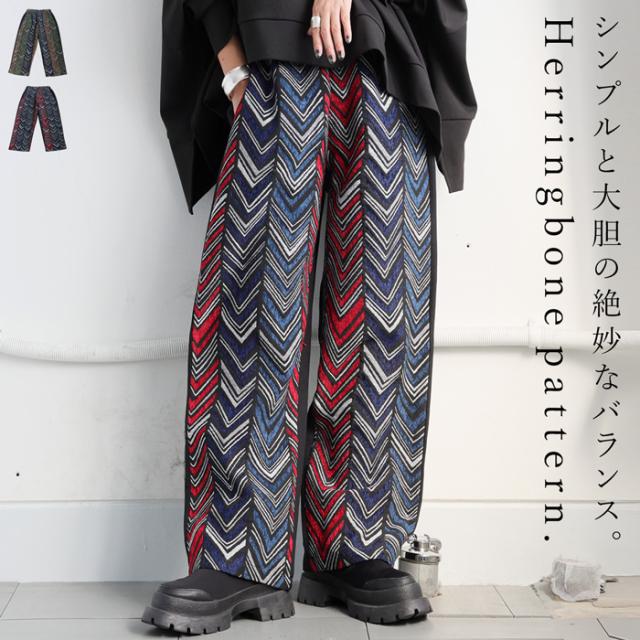 ze-01105 ロング 長ズボン ヘリンボーン柄 柄パンツ 柄 無地 切替 配色 テーパード ジャガード生地 ポケット付き ゆったり サイズ展開 モード 体型カバー 着痩せ 大きめ ユニセックス