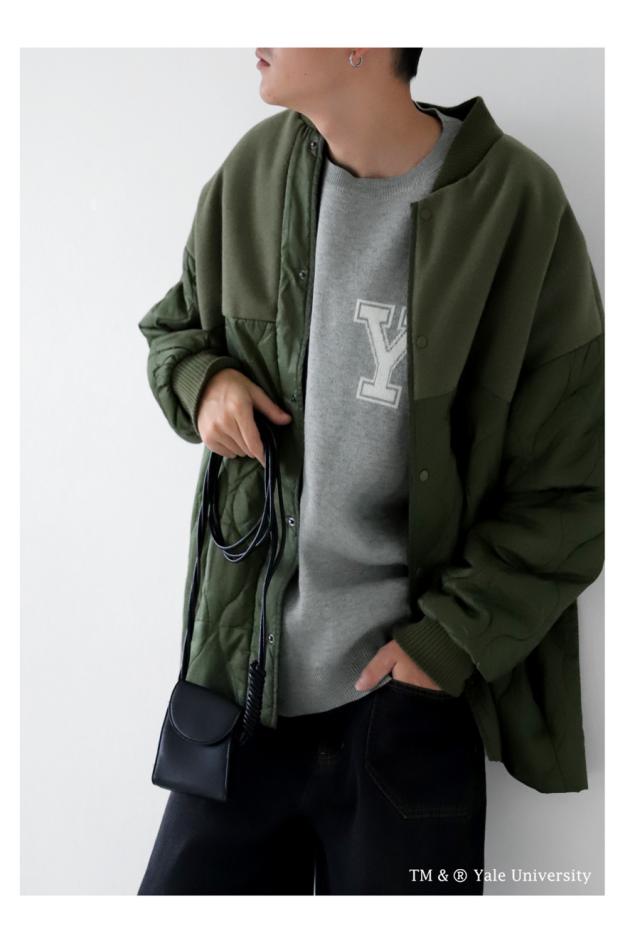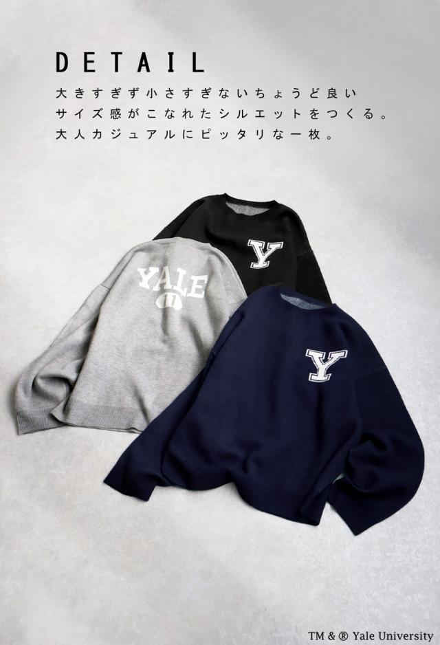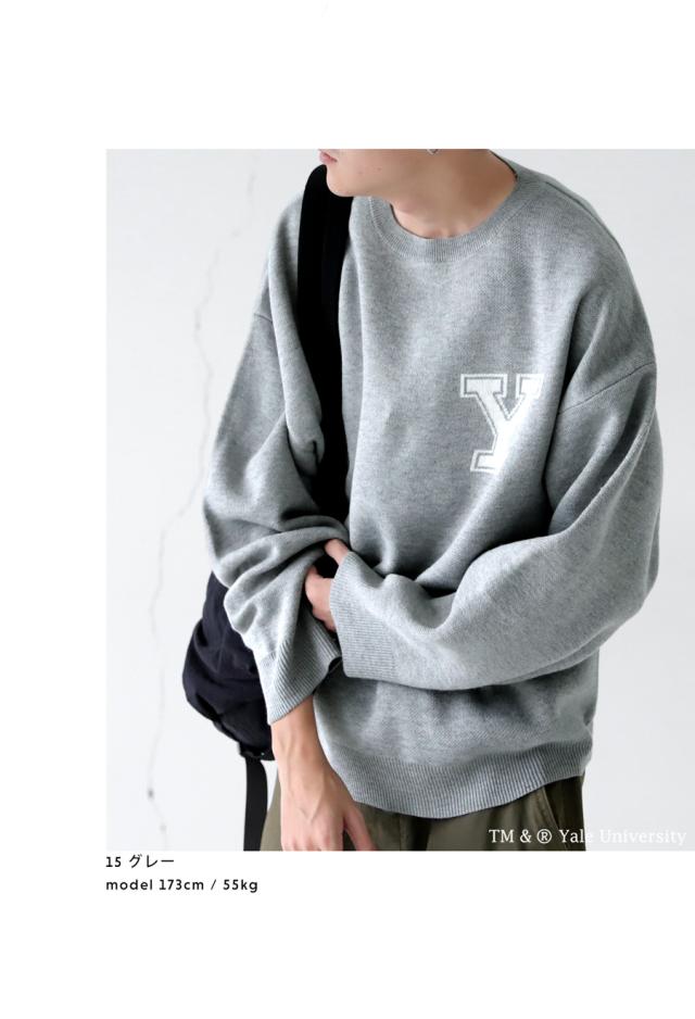 胸元のYのロゴや、バックのカレッジデザインが目を惹くデザインニット。