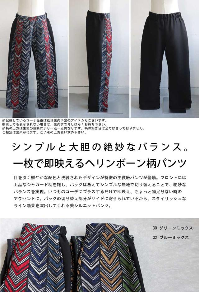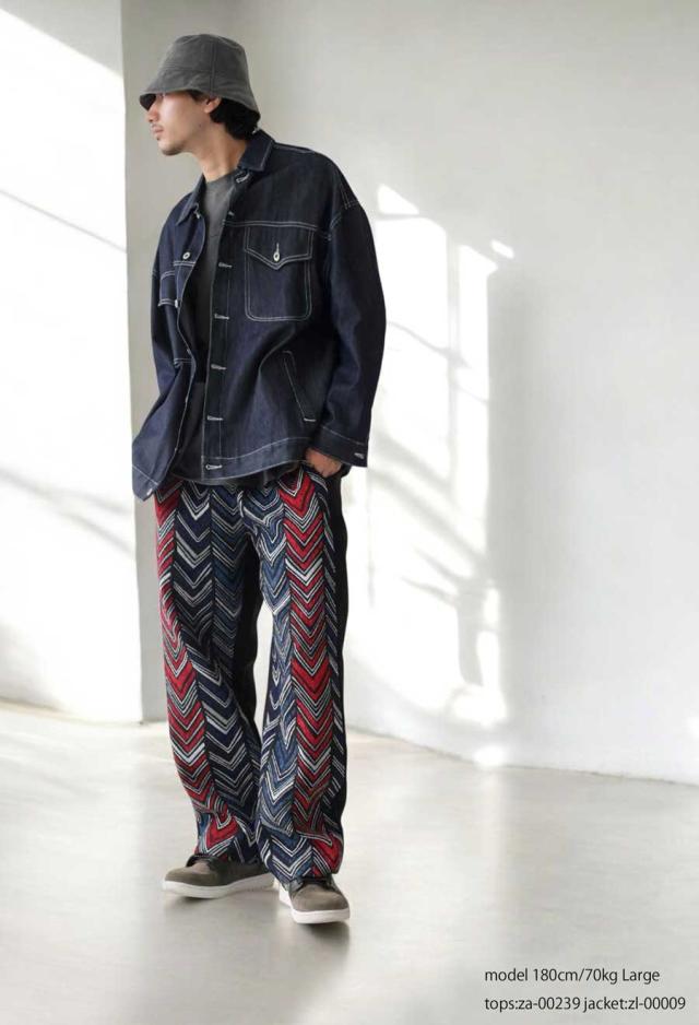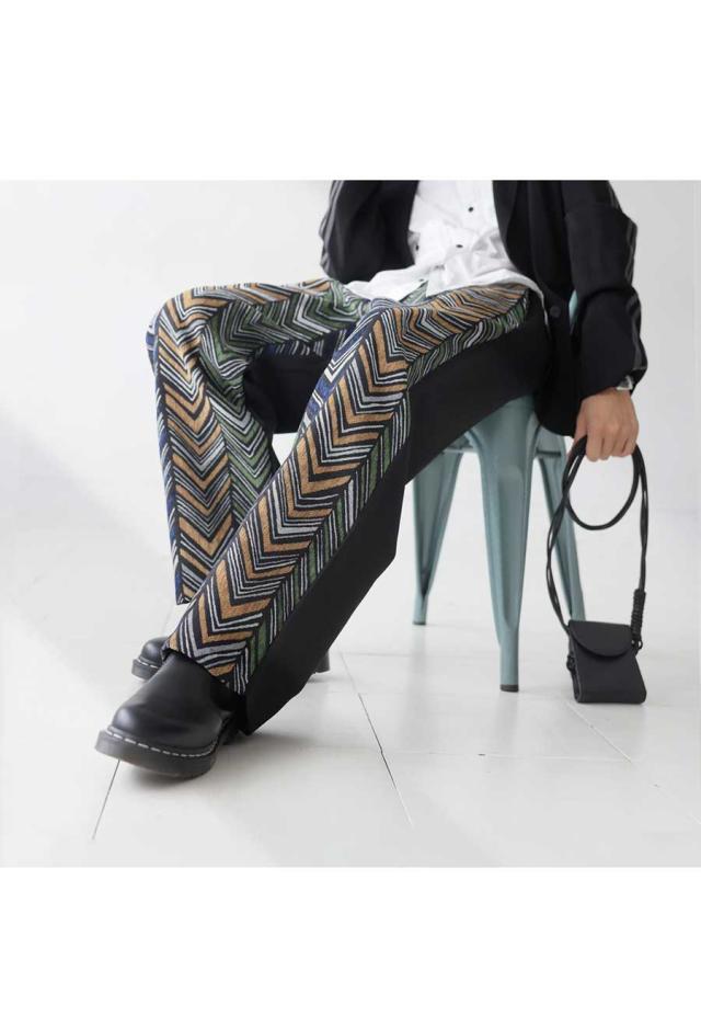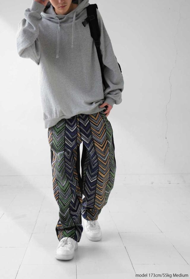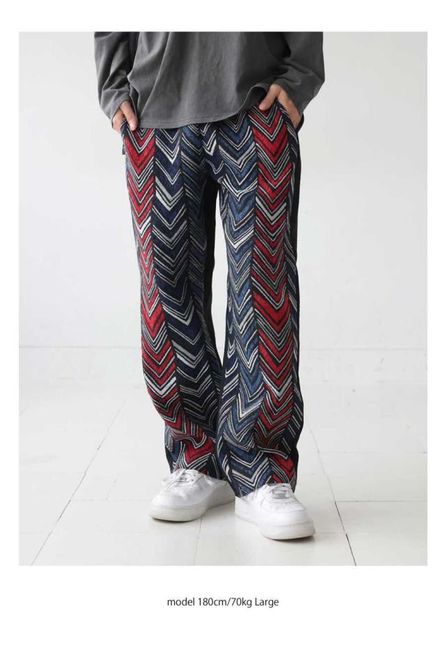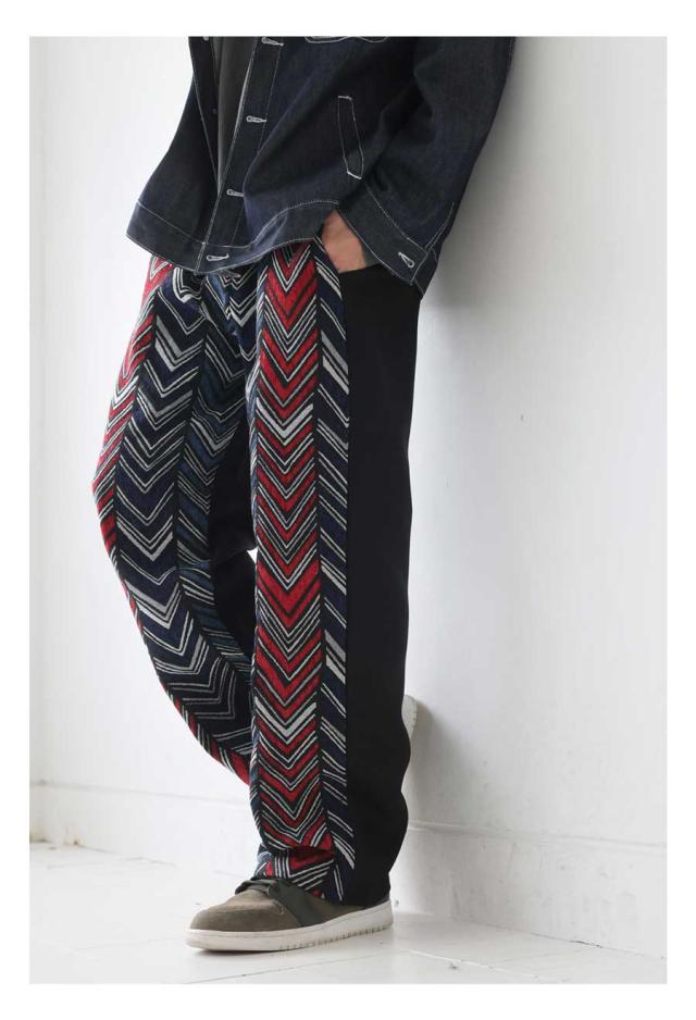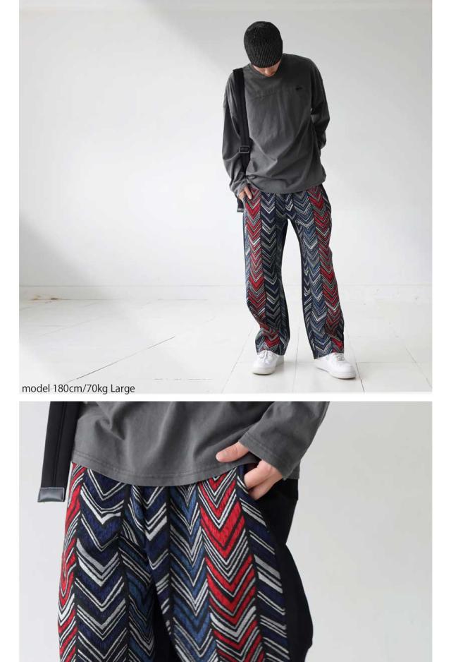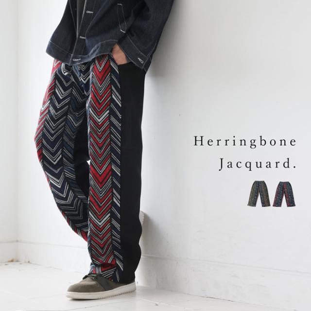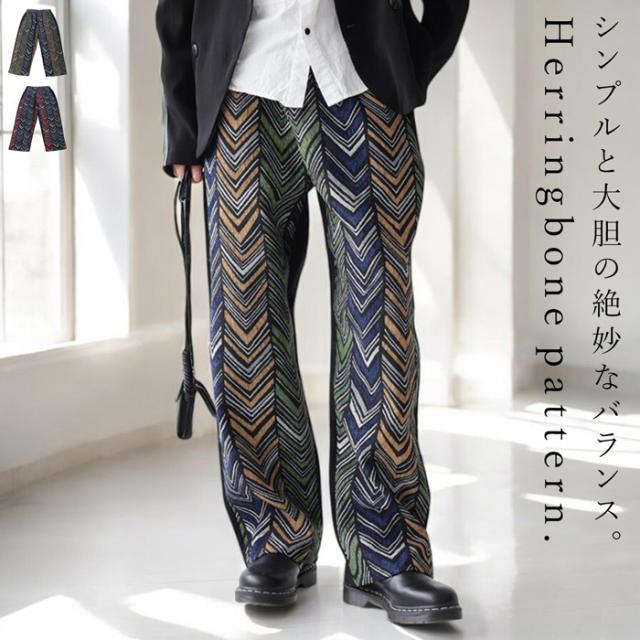 ze-01105z ロング 長ズボン ヘリンボーン柄 柄パンツ 柄 無地 切替 配色 テーパード ジャガード生地 ポケット付き ゆったり サイズ展開 モード 体型カバー 着痩せ 大きめ ユニセックス