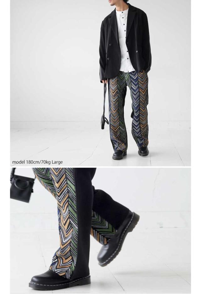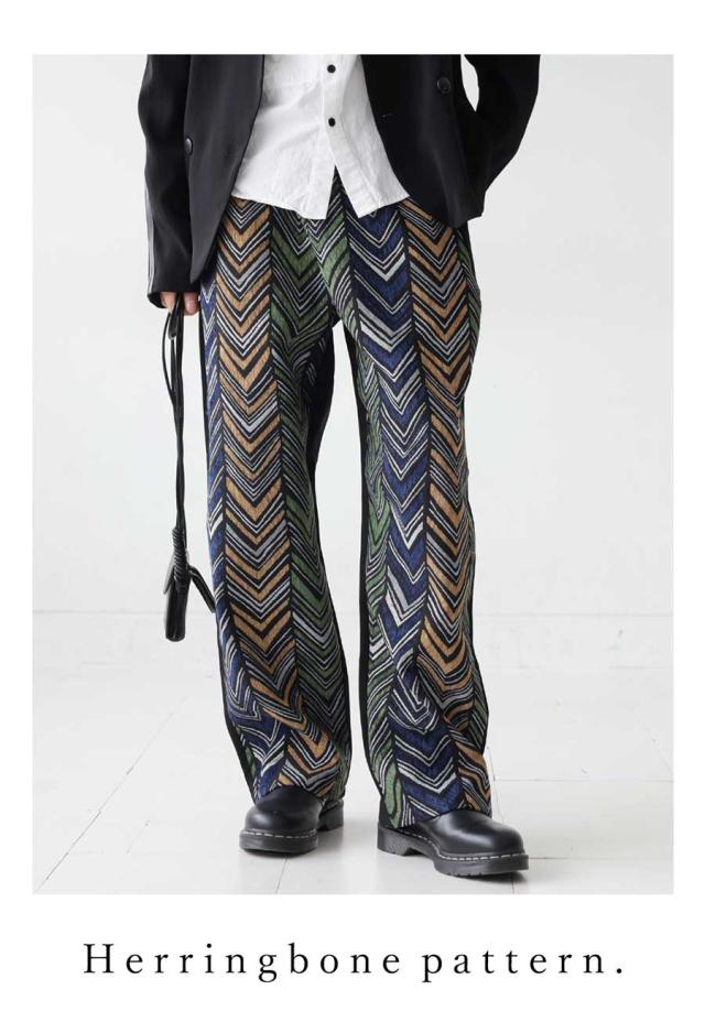 【検索ワード】ヘリンボーンパンツ パンツ メンズ ボトムス ロング 長ズボン ヘリンボーン柄 柄パンツ 柄 無地 切り替え ドッキング 配色 テーパード テーパードシルエット ジャガード生地 ポケット付き 綿混 ゆったり サイズ展開 Medium Large モード 高級感 上品 体型カバー 細見え 着痩せ 大きめ 大きいサイズ ロングパンツ ユニセックス 男性 男 かっこいい カッコイイ カジュアル antiqua treecafe アンティカ ツリーカフェ メンズファッション トレンド コーディネート 通販 ブランド 春 秋 冬 オールシーズン あんてぃか