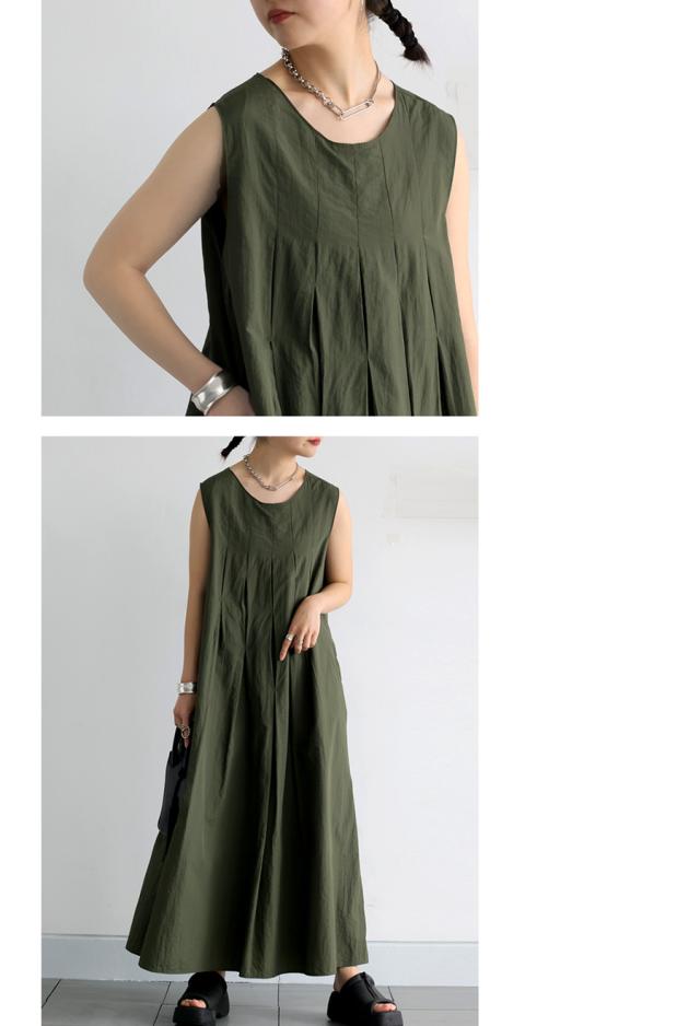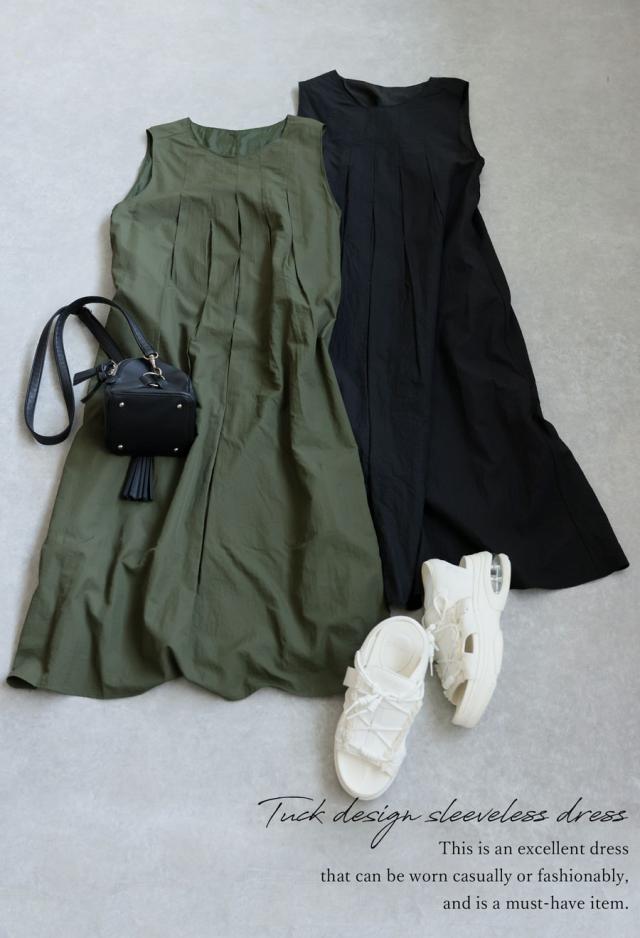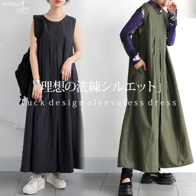 【検索ワード】タックデザインワンピース ワンピ レディース ロング 無地 ノースリーブ 袖なし 丸首 ラウンドネック プルオーバー ポケット付き タック ド絵r−プ ゆったり ナイロン シンプル きれいめ 上品 高級感 レイヤード 重ね着 シワになりにくい 通気性 ハリ感 薄手 ナチュラル ハンサム 大きめ 旅行 ロングワンピース ブラック 黒 カーキ サイズ展開 Regular Plus antiqua アンティカ 大人 おしゃれ 10代 20代 30代 40代 50代 60代 春 夏 秋 冬 オールシーズン お洒落 カジュアル かわいい かっこいい あんてぃか