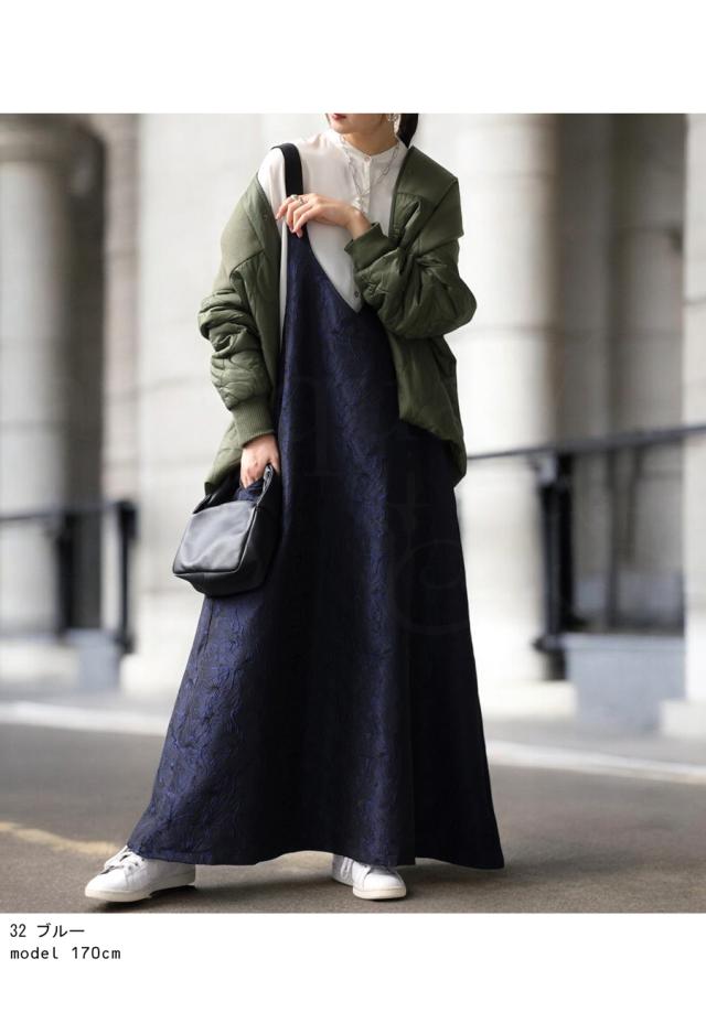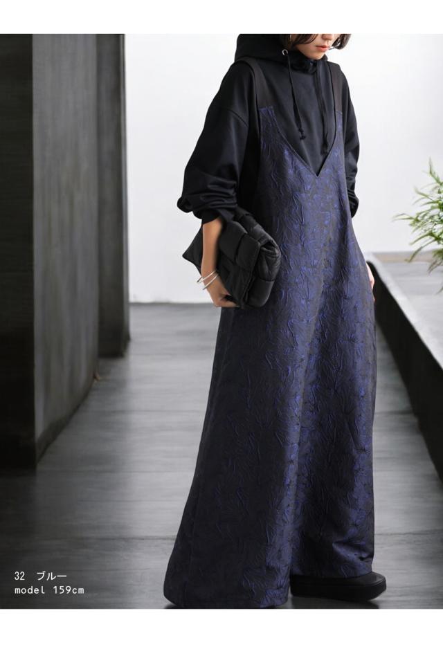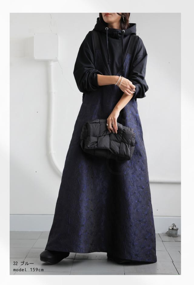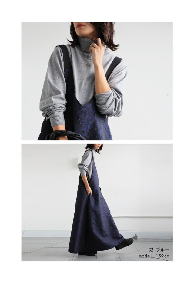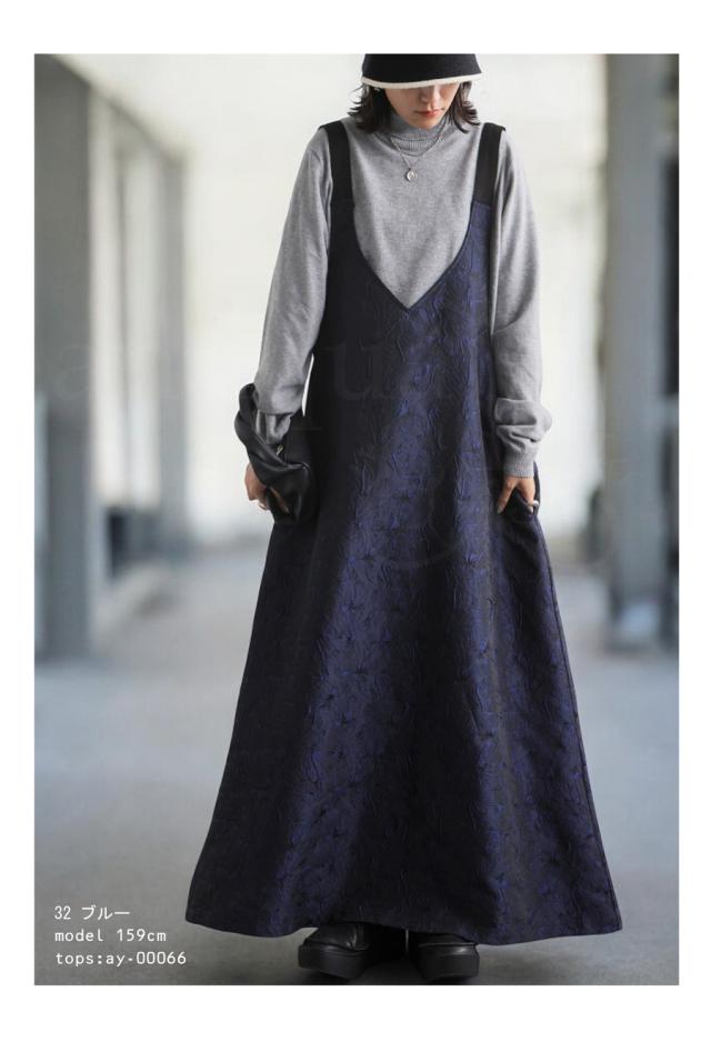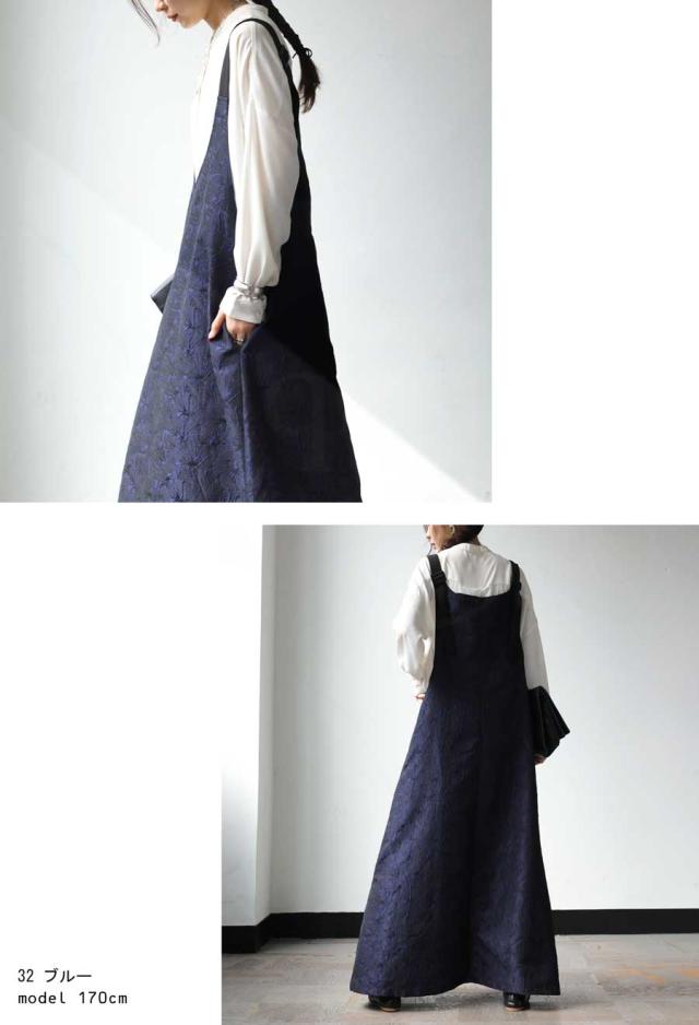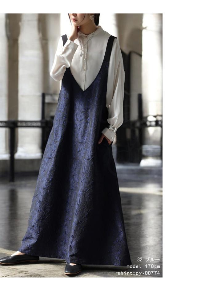 py-00774 スカート ボトムス ジャガード柄 刺繍 柄 サロペットワンピース 高級感 きれいめ Vネック Aライン サロペット サロペワンピ ゆったり サロペ ジャガード マキシ丈