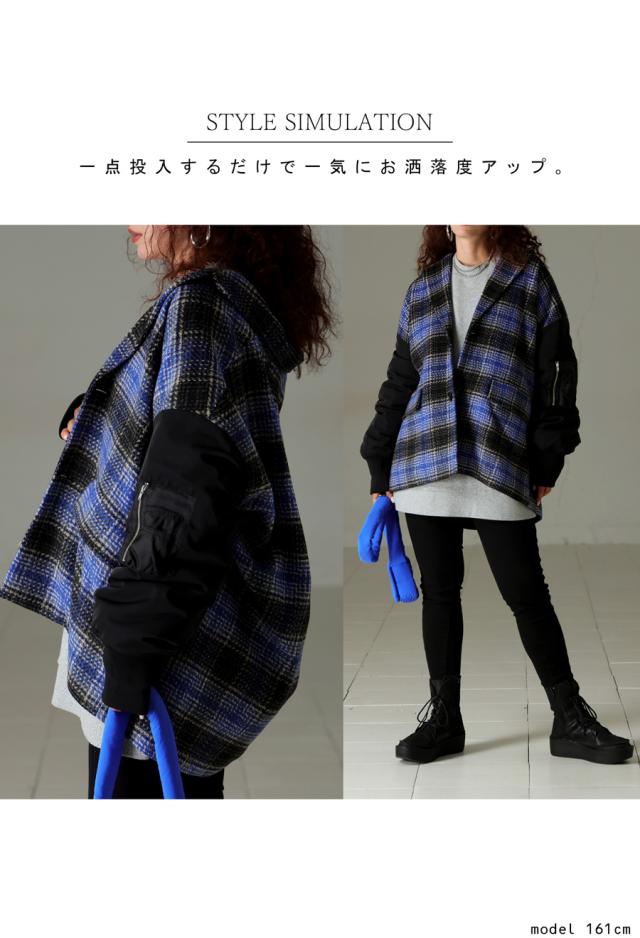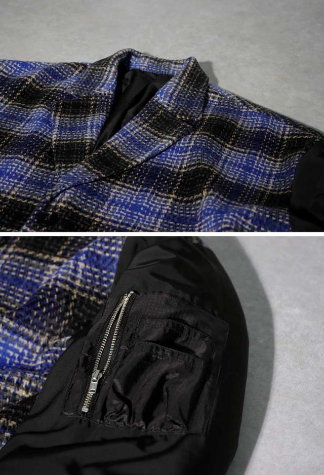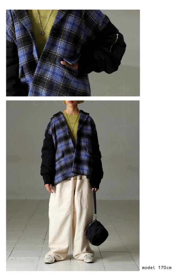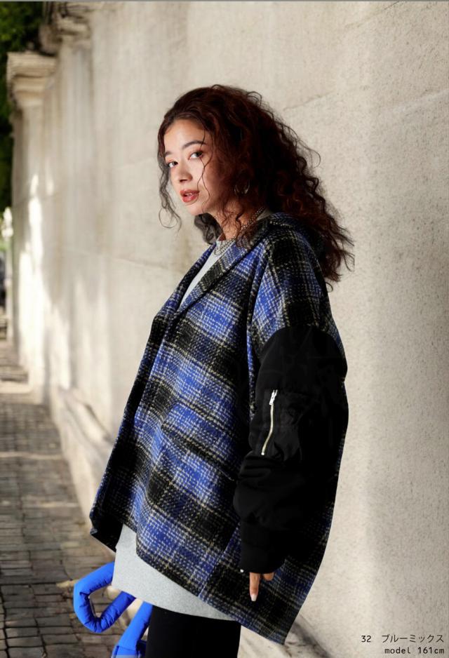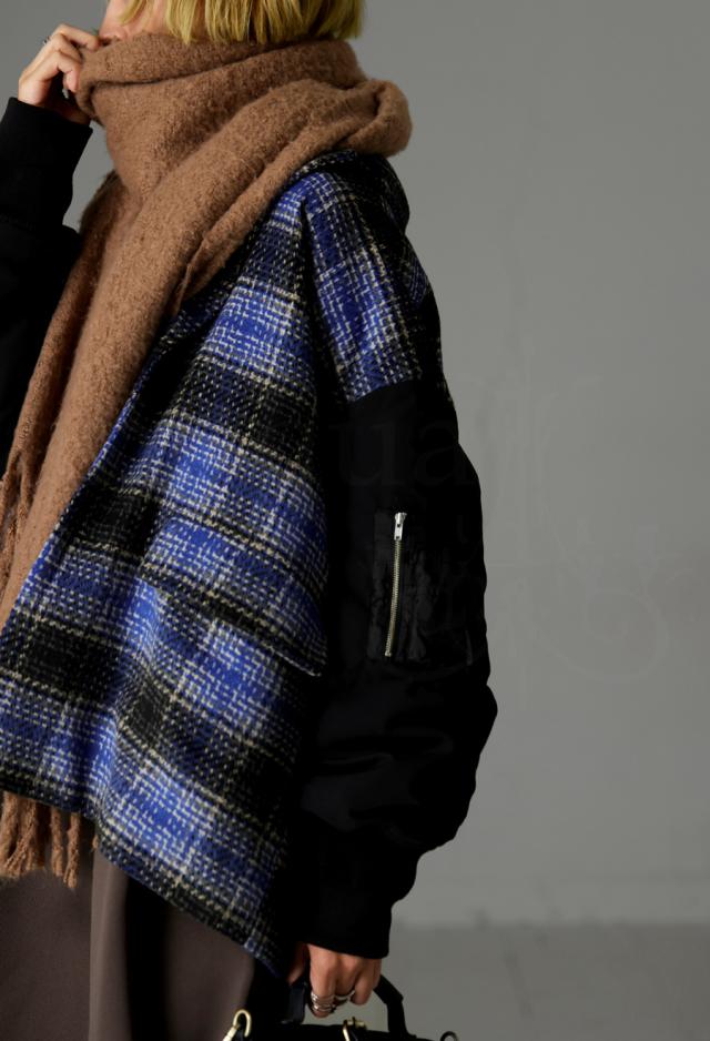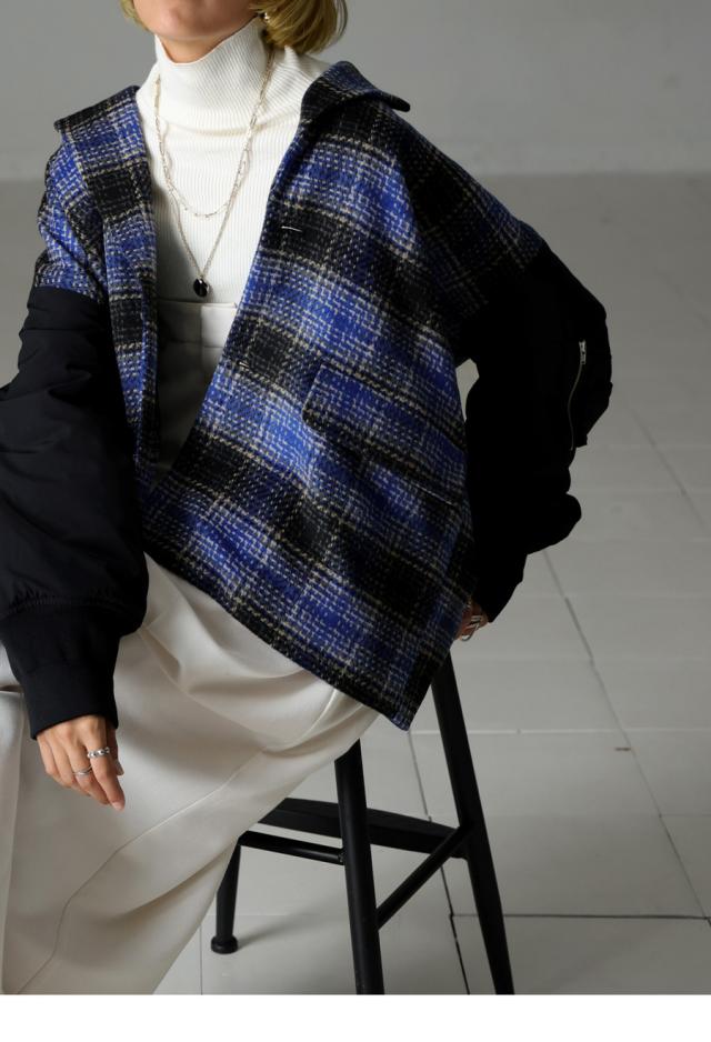 起毛感のあるチェック柄と、MA-1の袖がドッキングされたカジュアルなアウター。