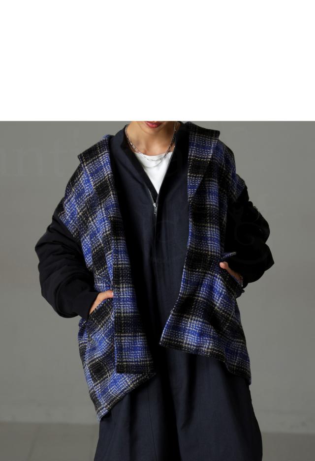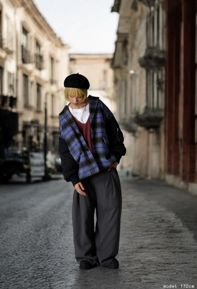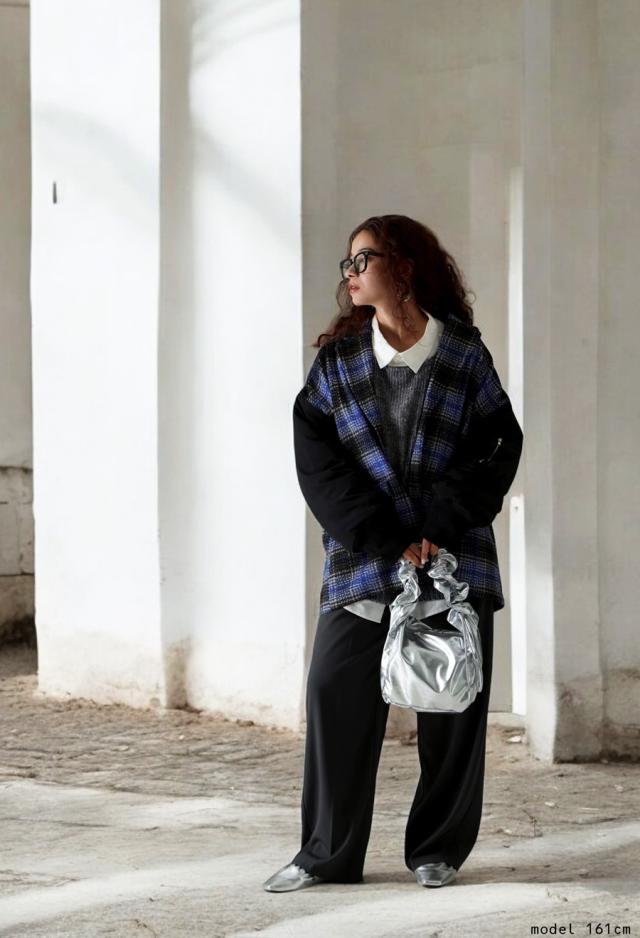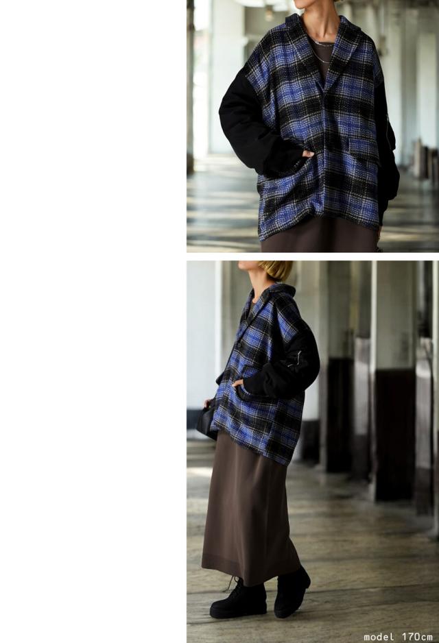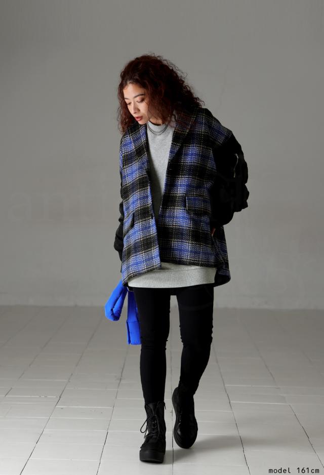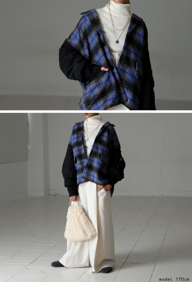 起毛感のあるチェック柄と、MA-1の袖がドッキングされたカジュアルなアウター。