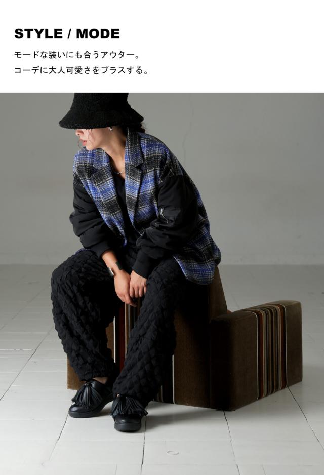 【検索ワード】ドッキングコート レディース アウター テーラードカラー 柄アウター 柄 無地 ジャケット チェック柄 MA-1 ブルゾン 切り替え ドッキング ボリューム袖 MA-1風 リブ ポケット付き フラップポケット 前後差 ゆったり 防寒 防風 軽量 暖かい あったか 中綿 マニッシュ モード 高級感 オーバーサイズ 大きめ 大きいサイズ コート ユニセックス antiqua treecafe アンティカ ツリーカフェ 大人 おしゃれ 10代 20代 30代 40代 50代 60代 秋 冬 お洒落 カジュアル かわいい かっこいい あんてぃか