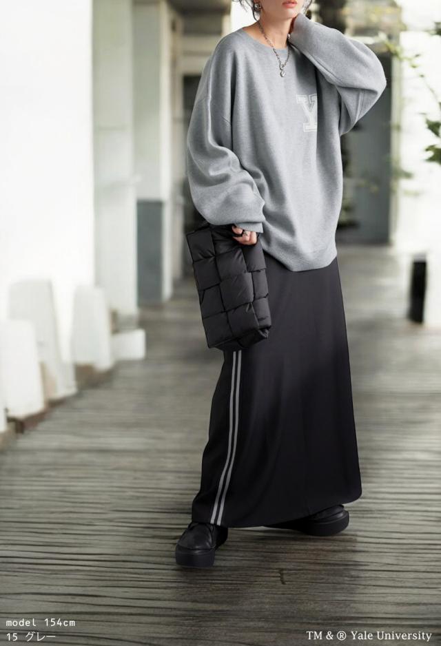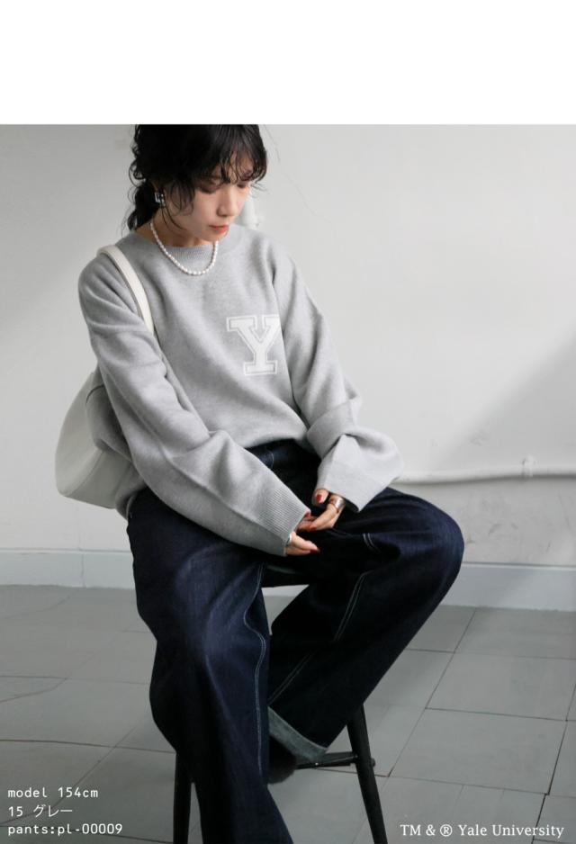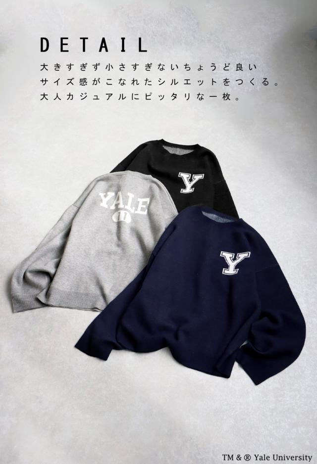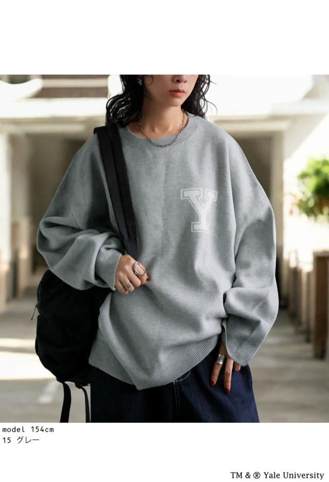 胸元のYのロゴや、バックのカレッジデザインが目を惹くデザインニット。