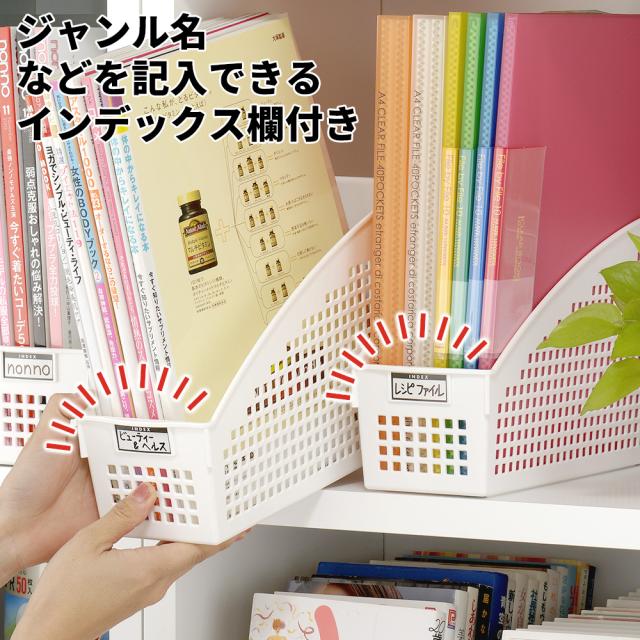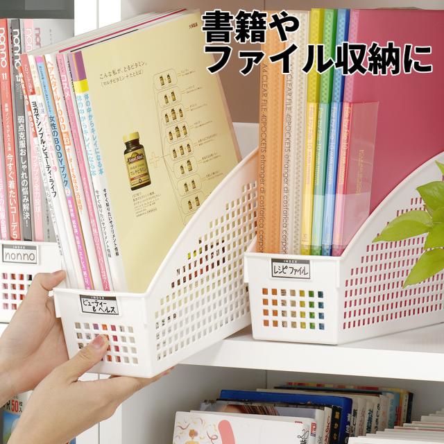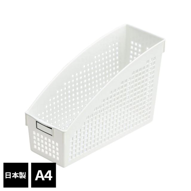 ファイル入れ 収納かご 日本製 ネームスタンド A4 ホワイト 4580 | 書類入れ 小物入れ 本 雑誌 縦型 立型 名前 名称記入 インデックス 片付け ボックス 籠 カゴ 整理 整頓