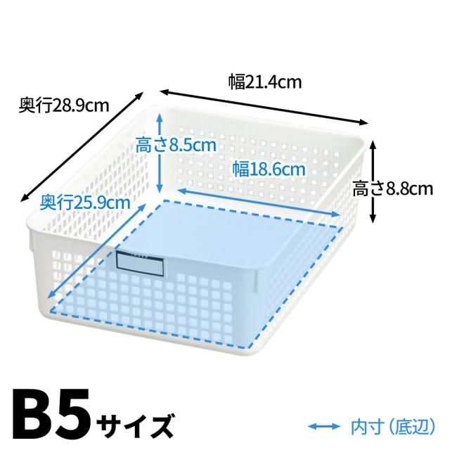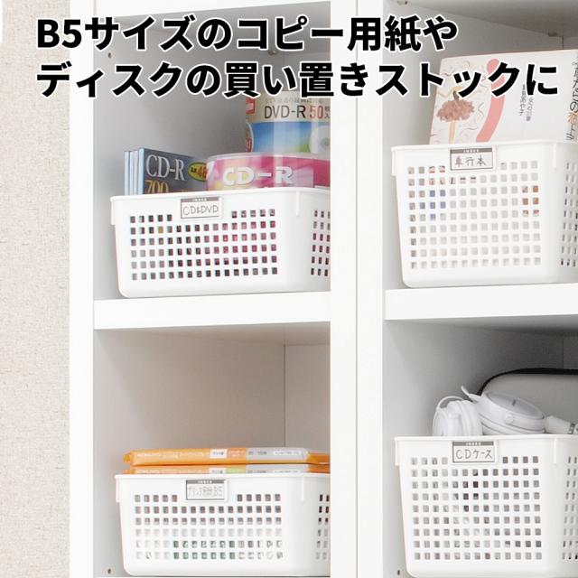 B5サイズのコピー用紙やディスクの買い置きストックの収納などに使えるB5サイズのネームバスケット。