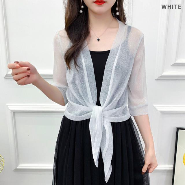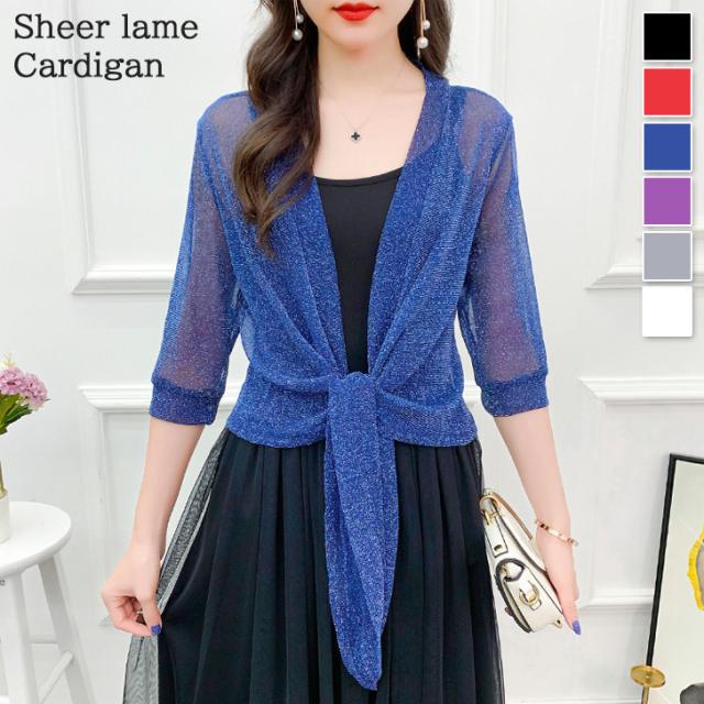 新作 選べる6カラー 7分袖 ラメ シアー カーディガン レディース トップス ボレロ 羽織り おしゃれ 透け感 薄手 前結び 短め 涼しい 冷房対策 重ね着 OL オフィス 通勤 軽量 可愛い きれいめ 上品 夏