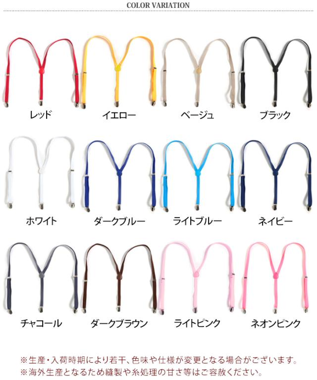 新作 子供から大人まで! Y型 15mm カラフル ゴム サスペンダー 選べる12カラー シンプルサスペンダー レディース メンズ キッズ 子供 ベルト パンツ スカート アクセサリー クリップ 調整可能 雑貨