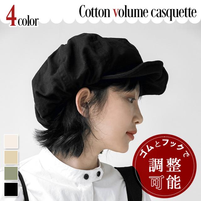 新作 ゴムとフックでサイズ調整◎ コットン ボリューム キャスケット レディース 帽子 ハット キャップ 綿 大きめ 小顔 小顔効果 軽量 折りたたみ UVケア 紫外線対策 日よけ おしゃれ かわいい カジュアル