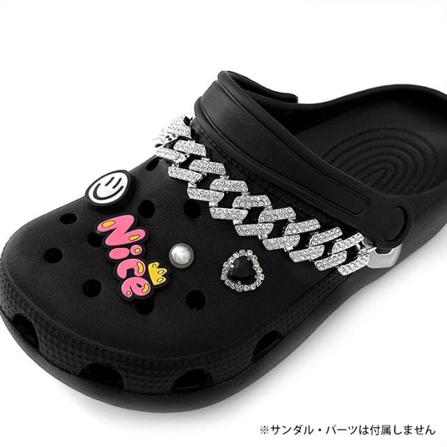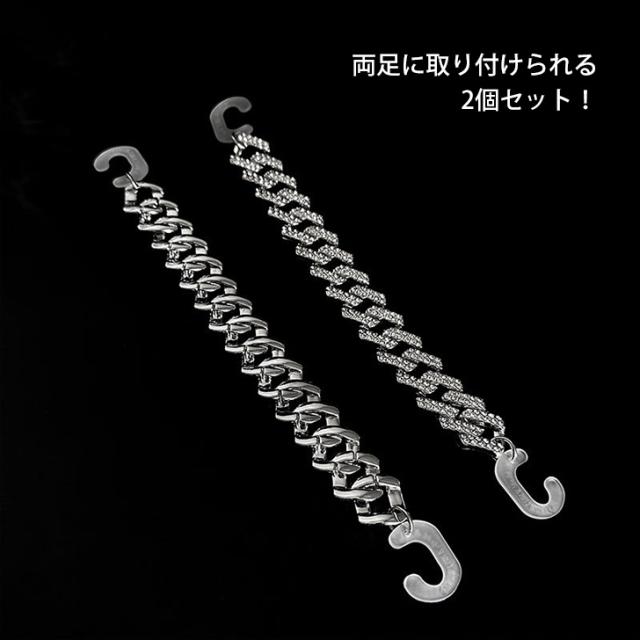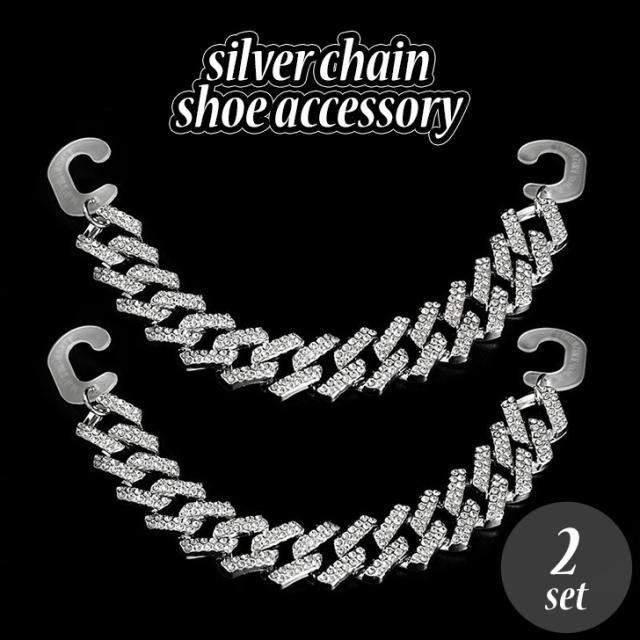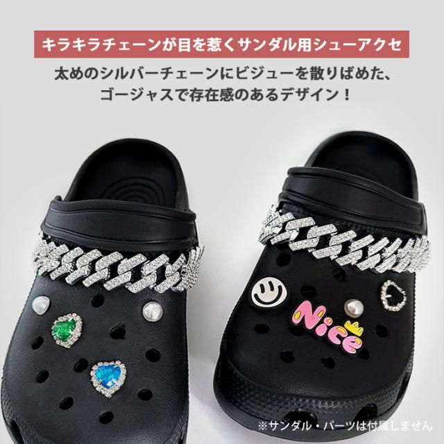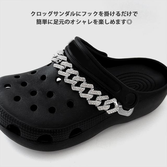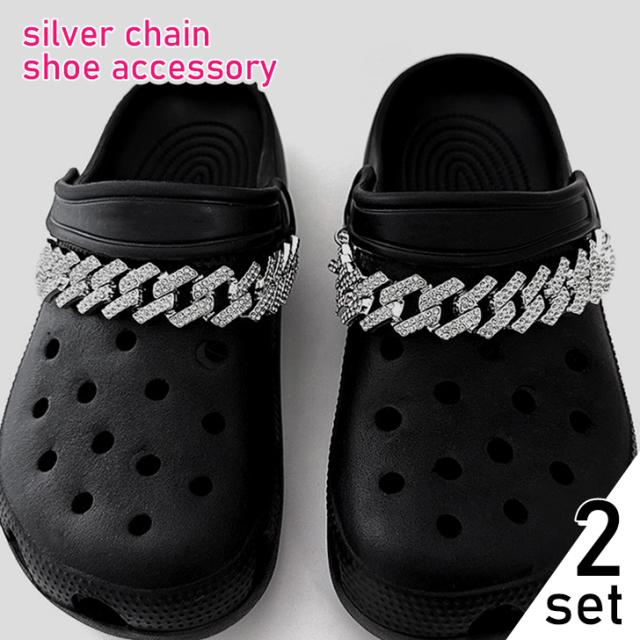 新作 サンダル用 ビジュー付き シルバー チェーン シューズアクセサリー 2本セット レディース メンズ シューチャーム シューピアス シューアクセ シューパーツ シューズ サンダル クロッグサンダル アクセサリー