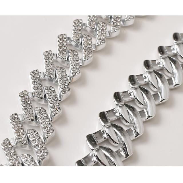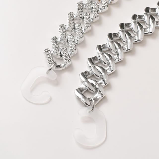 太めのシルバーチェーンにビジューを散りばめた、