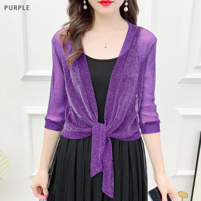 新作 選べる6カラー 7分袖 ラメ シアー カーディガン レディース トップス ボレロ 羽織り おしゃれ 透け感 薄手 前結び 短め 涼しい 冷房対策 重ね着 OL オフィス 通勤 軽量 可愛い きれいめ 上品 夏