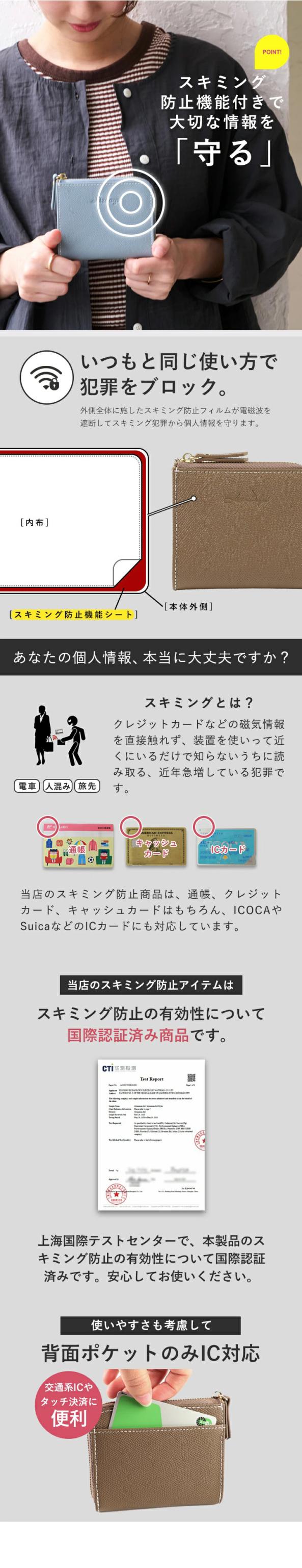 スキミング防止機能搭載なのでクレカなども安心して持ち歩けます。