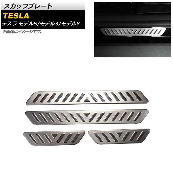 スカッフプレート テスラ モデルS 2014年〜 マットシルバー ステンレス製 入数:1セット(4個) AP-SG188-MSI