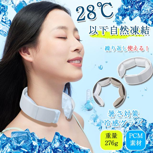 ●暑い真夏の季節でもリングはひんやりキープ!28度または24度以下の空間で凍る不思議な氷「PCM素材」で作られた首元用のネッククーラー。
